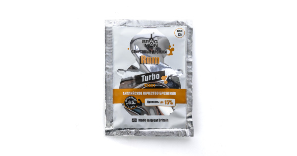 Active dry alcoholic turbo yeast Turbo yeast alcohol BragMan "RUM TURBO" (72 gr) with a full range of macro and micro nutrients, ideal for fermentation of fruit and sugar base of any raw material (sugar glucose syrup). Turbo yeast alcohol BragMa..