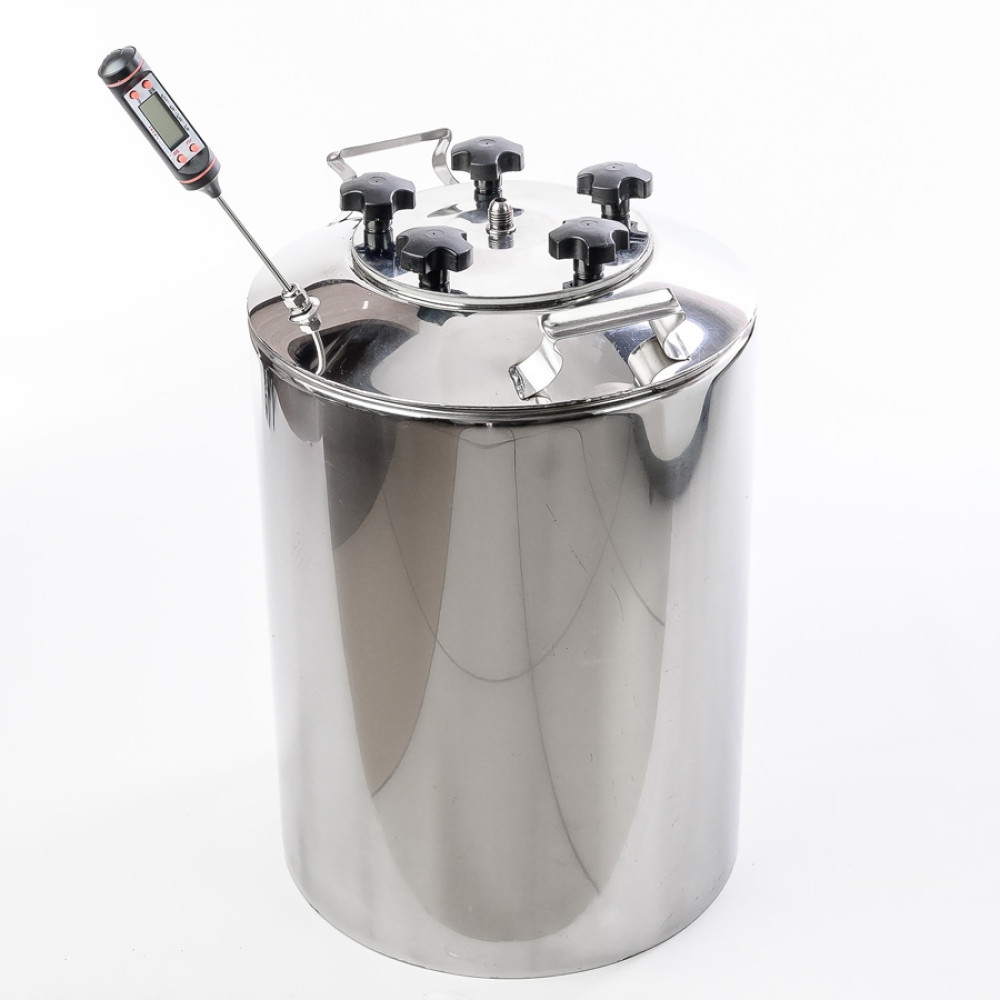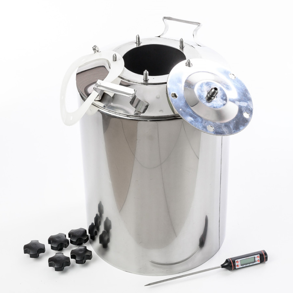 Easy-to-use large throat of 110 mm enables easy and simple loading of ingredients, and a flat bottom allows you to prepare alcoholic drinks of all types of plates. Alembic 20/110/t considerably facilitates the brewing process.