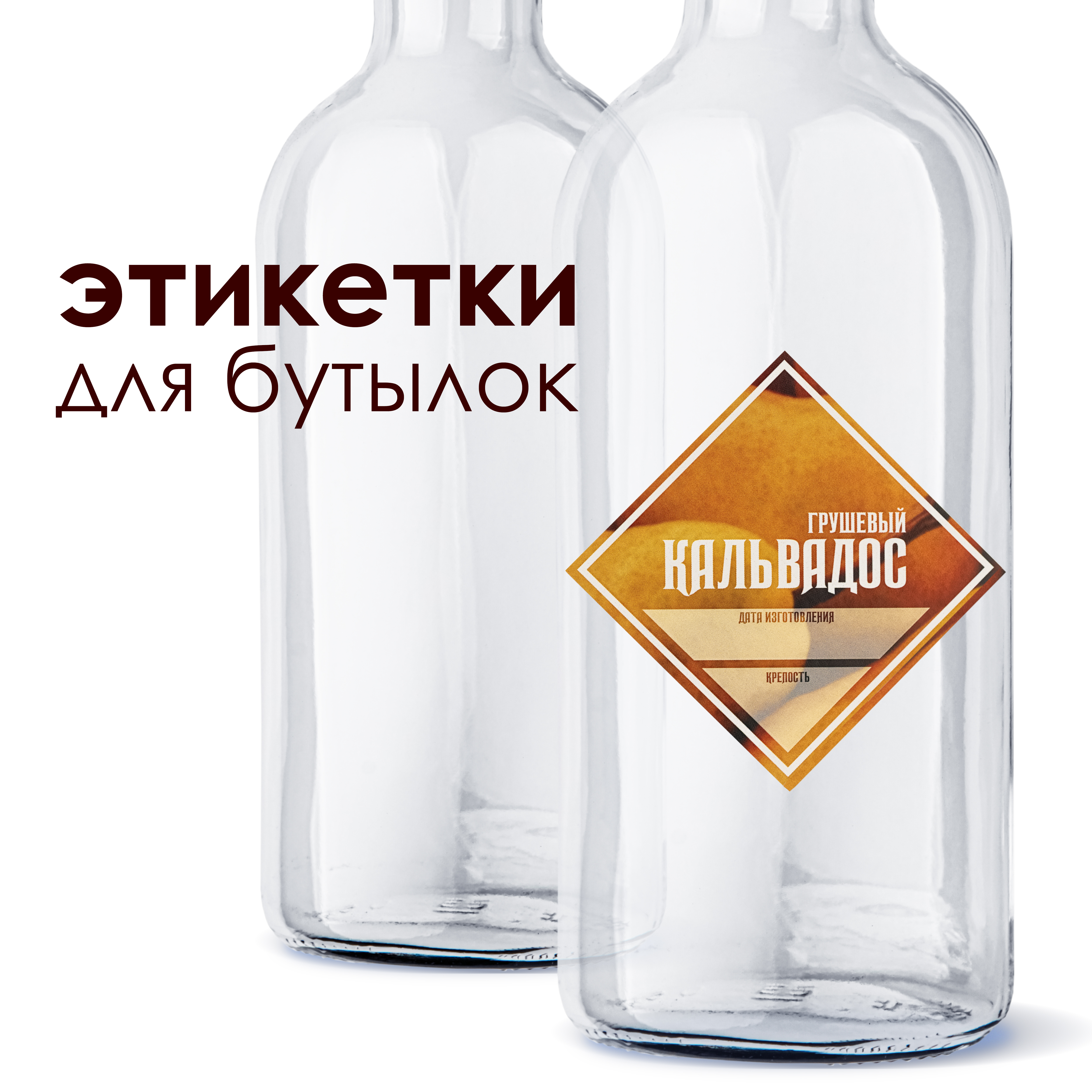 Etiketka dlya butylok "Kal'vados grushevyj"Samokleyashchayasya etiketka "Kal'vados grushevyj" prednaznachena dlya oformleniya butylok s napitkom sobstvennogo prigotovleniya.Razmer: 85 * 85 mmNa naklejke raspolozheno dva polya dlya ruchnogo zapolneniy..