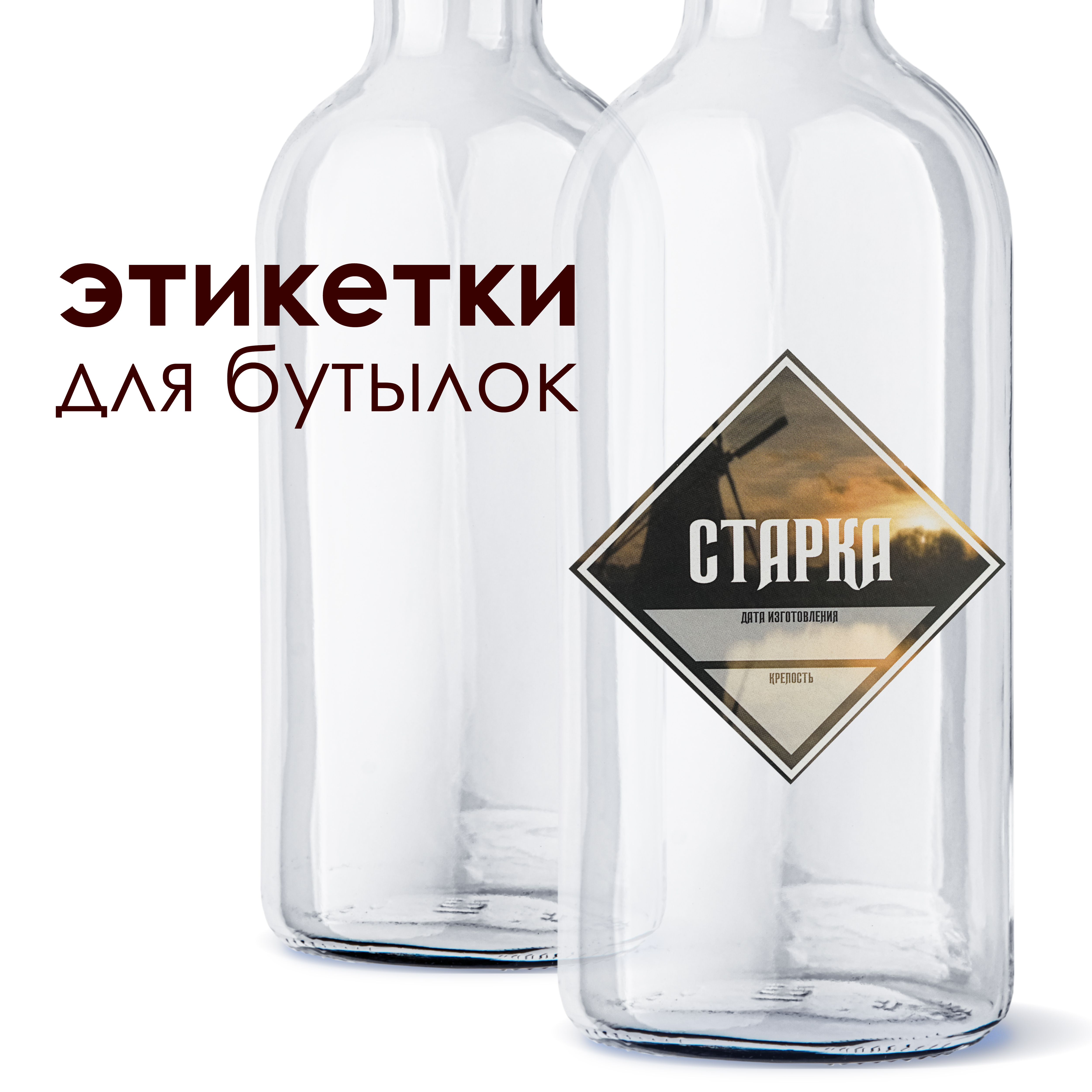 Etiketka dlya butylok "Starka"Samokleyashchayasya etiketka "Starka" prednaznachena dlya oformleniya butylok s napitkom sobstvennogo prigotovleniya.Razmer: 85 * 85 mmNa naklejke raspolozheno dva polya dlya ruchnogo zapolneniya:Data izgotovleniyaKrepos..
